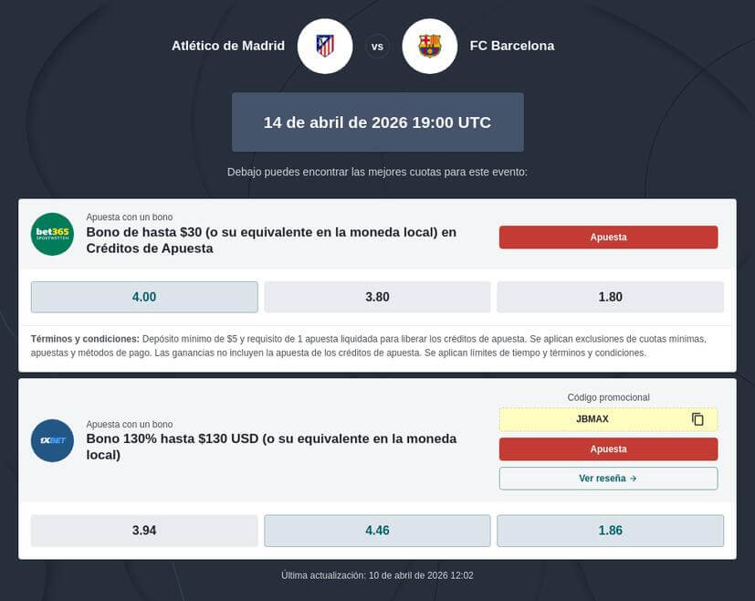 6.2 🏆 ¿Dónde encontrar las cuotas Atlético Madrid vs Barcelona más actualizadas?