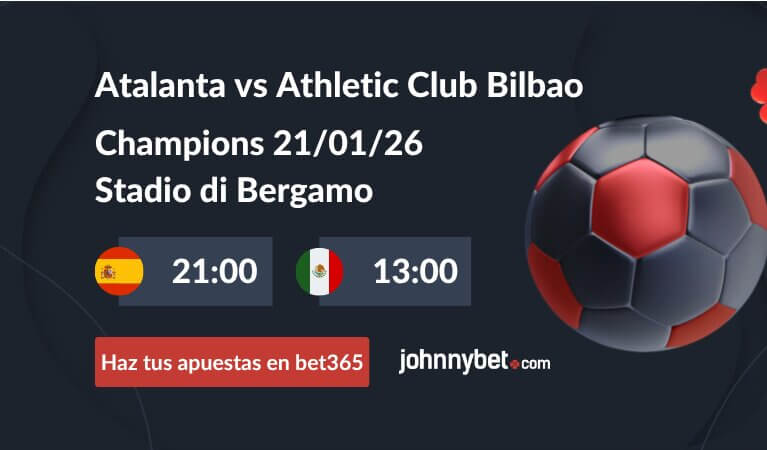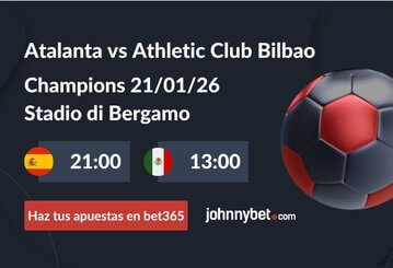 Descubre quién es el favorito para el partido del 21 de enero de 2026 de la Champions League en nuestro pronóstico Atalanta vs Athletic Club Bilbao. Atalanta es el ligero favorito para este partido porque jugará en casa y ha tenido mejores resultados que los colchoneros en lo que va de la competición. De momento, las cuotas estimadas para la victoria de Atlanta son de 2.20 y 3.00 para Bilbao.