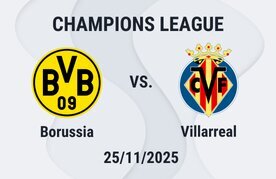 El mejor pronóstico Borussia Dortmund vs Villarreal es la victoria del Borussia Dortmund, con mercados complementarios como más de 2.5 goles y ambos marcan para aprovechar cuotas de valor.
