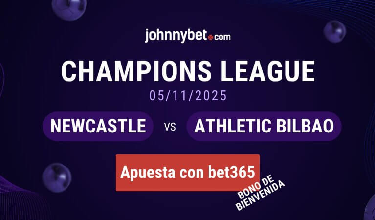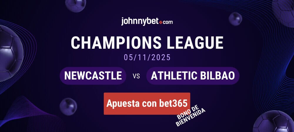 El pronóstico Newcastle vs Athletic Club 05/11/25 Champions League será uno de los partidos más atractivos de la fase de grupos. Según las cuotas de apuestas y probabilidades Newcastle United parte con un 66.67% de probabilidades de victoria (cuota de bet365 @1.50), Athletic Club con un 15.38% (cuota @6.50) y el empate tiene un 24.39% de probabilidades (cuota @4.20).