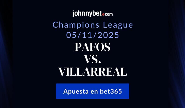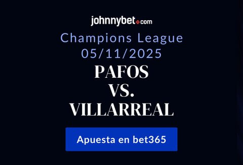 El partido de hoy 5 de noviembre de 2025 se va a jugar a las 18:45 en el estadio Alphamega de Chipre. En este artículo no solo damos nuestro Pafos vs Villarreal pronóstico ganador del partido, sino que también damos un repaso por su historial y por las apuestas anticipadas y en vivo que puedes hacer para el partido. Además, te recomendamos algunas promociones a las que puedes sacarle provecho para hacer apuestas Champions.