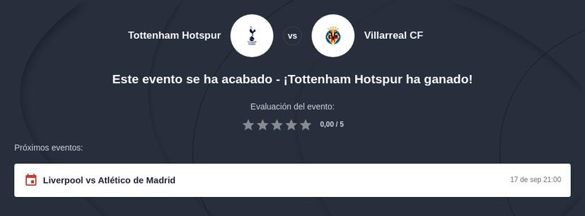 5.3 ¿Quién gana Tottenham vs Villarreal Champions League 16/09/2025?
