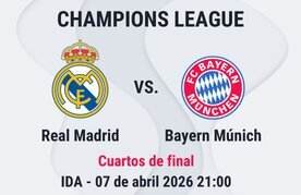 La ida de los cuartos de final se juega el 7 de abril de 2026 en el Bernabéu y la vuelta el 15 de abril de 2026 en el Allianz Arena. Ambos partidos empiezan a las 21:00 en España.