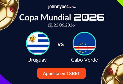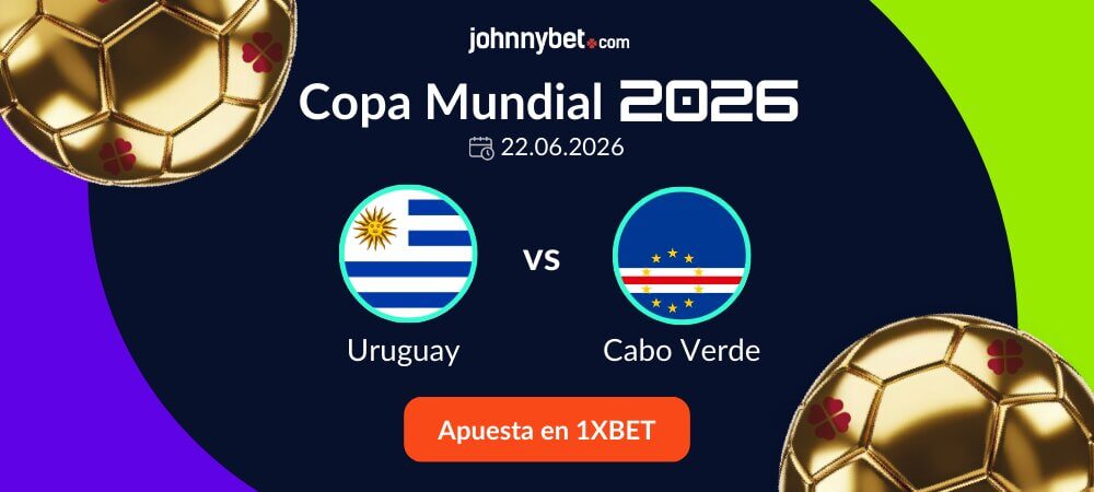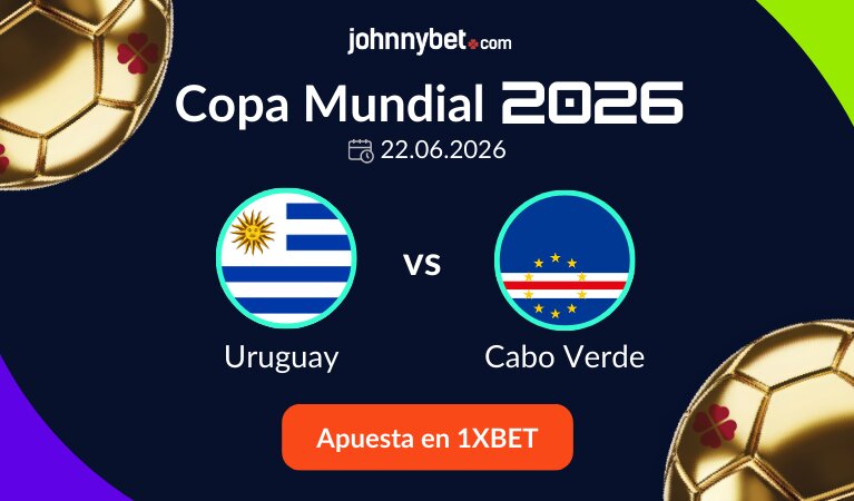 Aqu铆 tienes el Uruguay vs Cabo Verde pron贸stico de JohnnyBet. Este partido corresponde a la fase de grupos del Mundial y se disputar谩 en la segunda fecha. Se jugar谩 el domingo 22 de junio de 2026 y tendr谩 lugar en el Hard Rock Stadium de Miami. Las cuotas estimadas para este evento claramente favorecen la victoria de Uruguay (1.35 en decimales, -286 en americana, 74.1%). El empate pagar谩 alrededor de 4.50 (+350 en americana, 22.2%), y la victoria de Cabo Verde pagar谩 8.50 (+750, 11.8%)